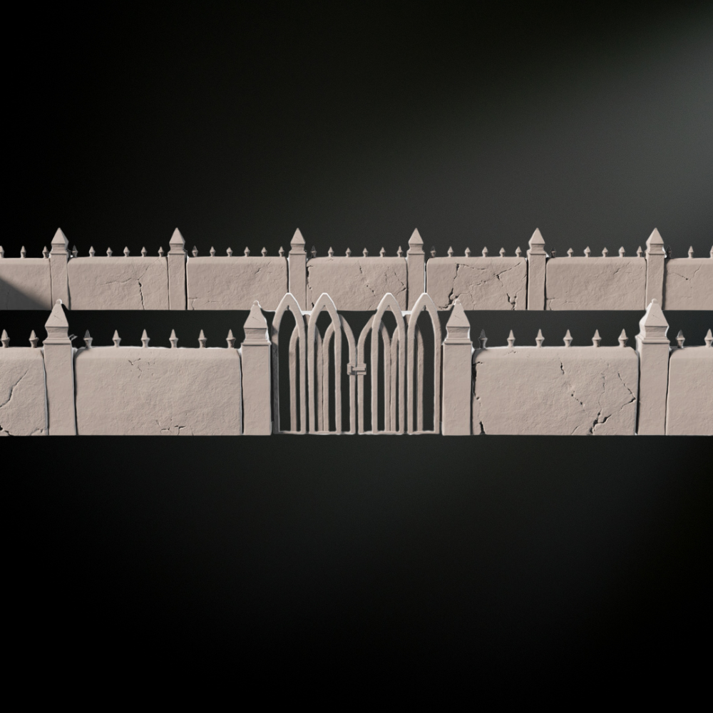 Graveyard Walls STL File – 3D Printable Cemetery Fences, Gothic Terrain, Horror Scenery, 28mm Wargaming STL